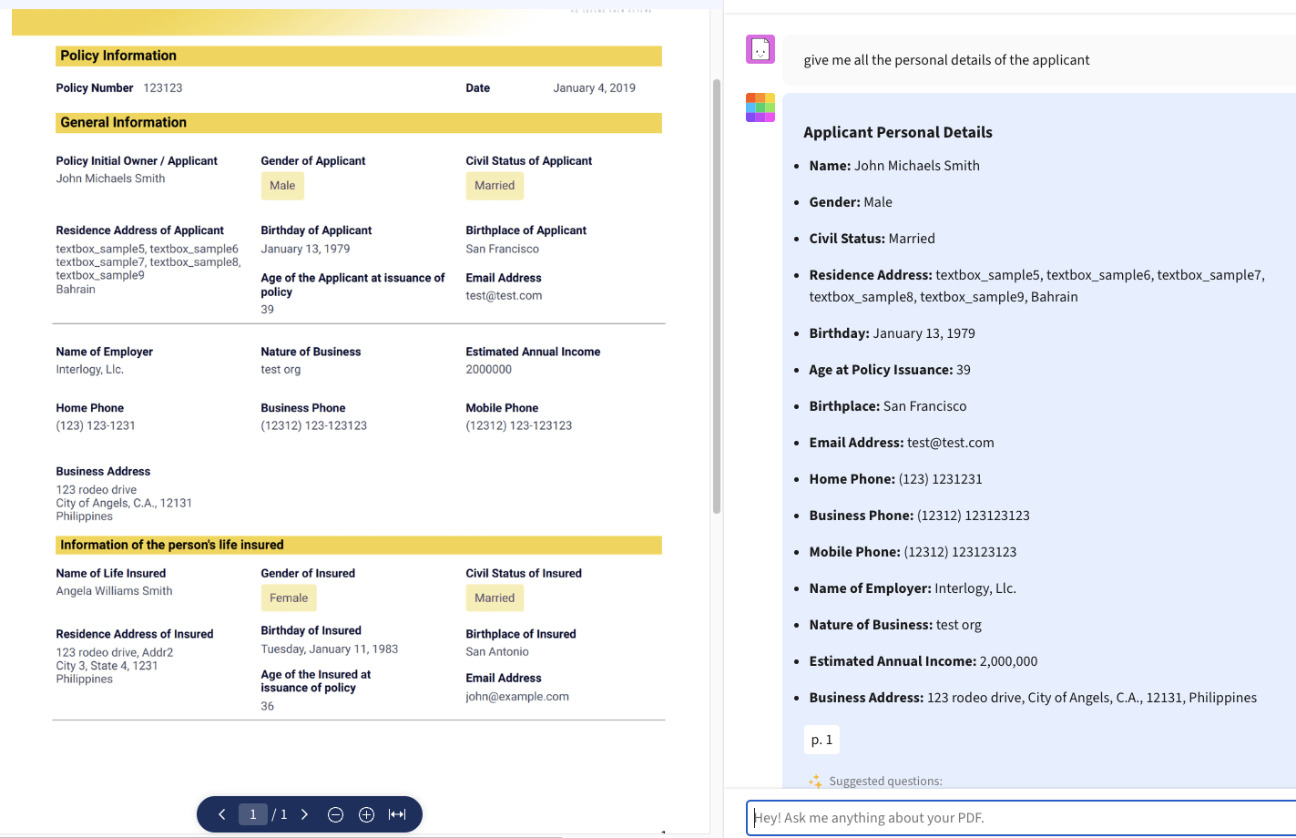 In insurance claim document, it can identify “Policy ID: HDFC-98374” as sensitive even though “Policy ID” isn’t a standard NER tag.